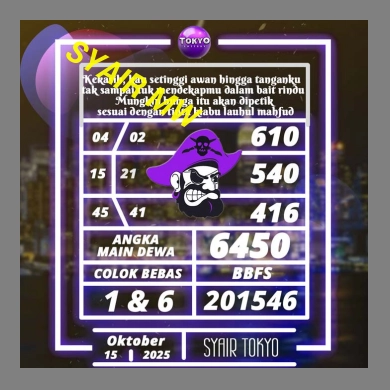 SYAIR PREDIKSI KELUARAN TOKYO, 15-Oct-2025